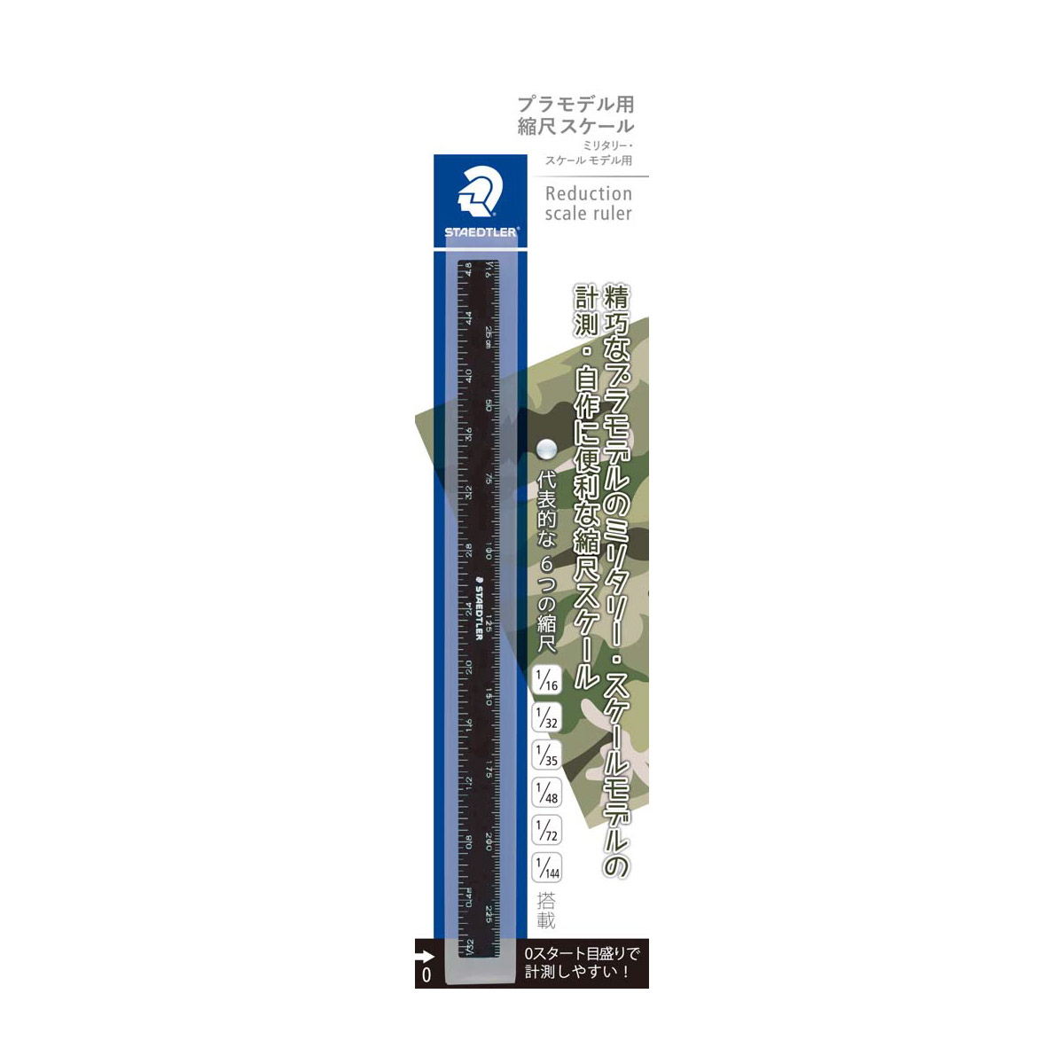 ●ミリタリー・スケールモデルでよく使用される縮尺6種の目盛りを備えた、スリムタイプの縮尺スケール。