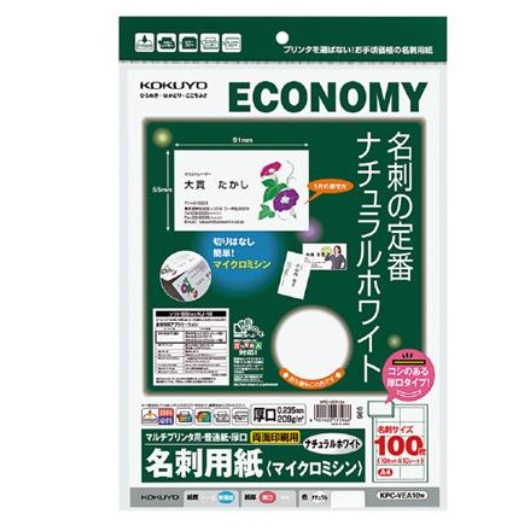 コクヨ KPC-VEA10W マルチプリンタ用名刺用紙 マイクロミシン目 両面普通紙 A4 厚口10面10枚 ホワイト