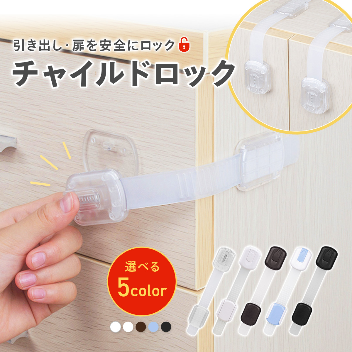 このチャイルドロックを扉や引き出しなどに取り付けてロックすれば、予期せぬ危険から守ってくれます♪