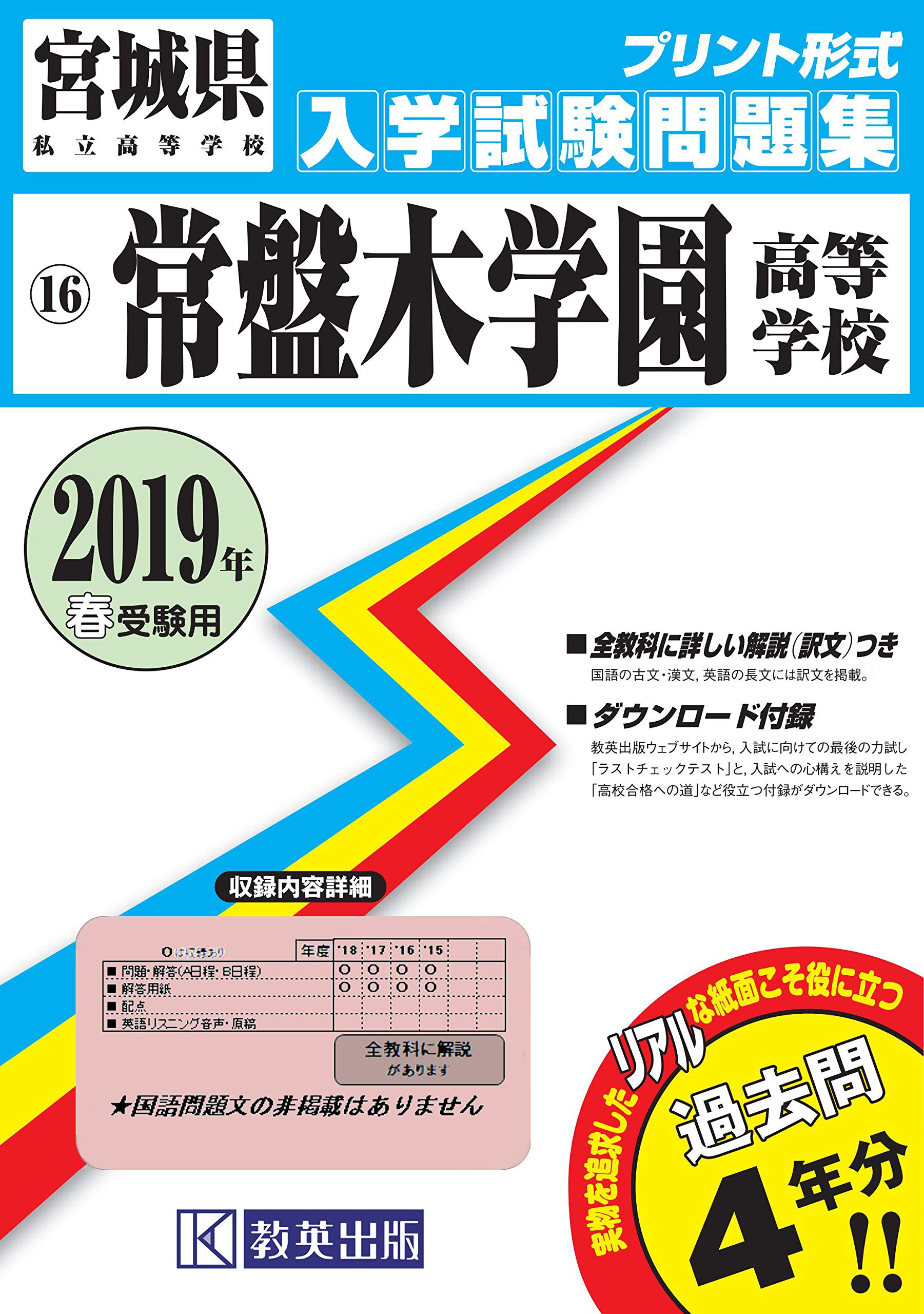 常盤木学園高等学校過去入学試験問題集2019年春受験用(実物に近いリアルな紙面のプリント形式過去問) (宮城県高等学校過去入試問題集)