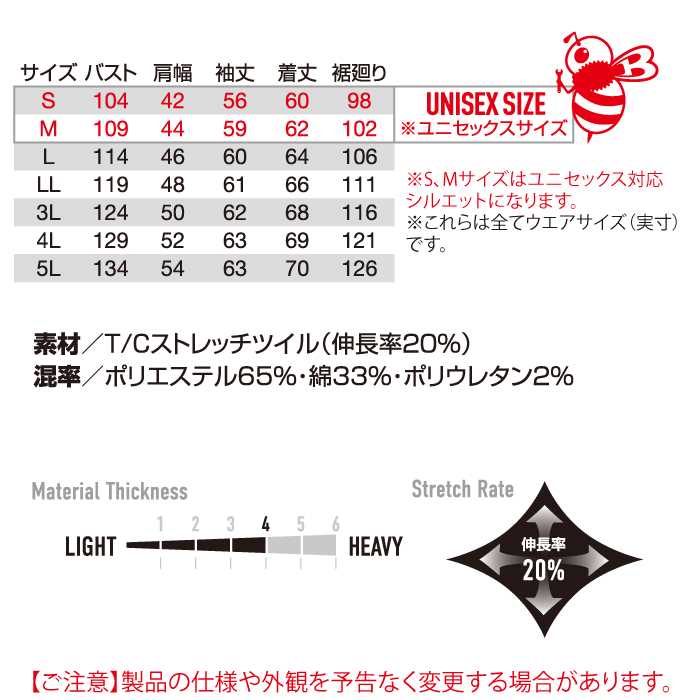 ・素材:T/Cストレッチツイル(伸長率20%)