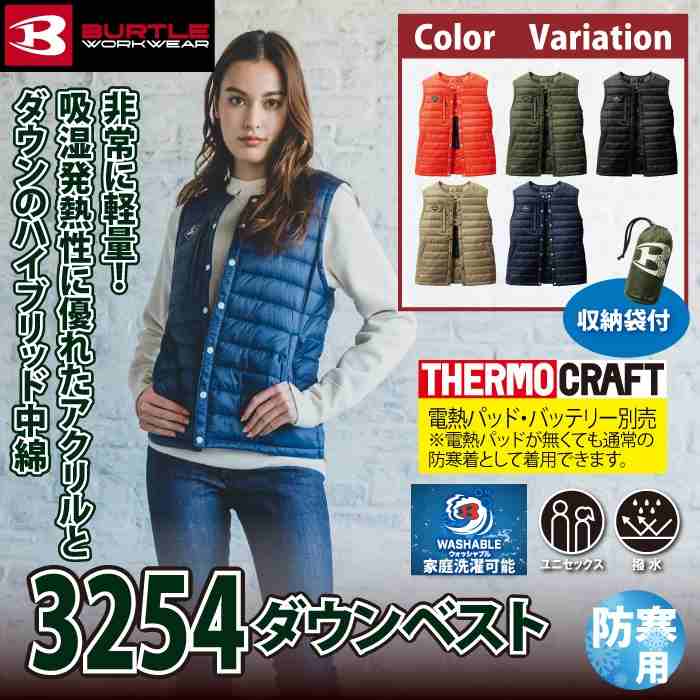 バートル BURTLE 作業着 防寒着 3254 ダウンベスト XXL 作業服 秋冬 TC500サーモクラフト対応