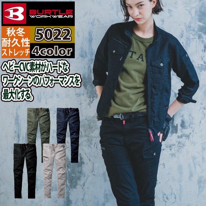 バートル BURTLE 作業着 作業ズボン 2024秋冬新作 5022 カーゴパンツ SS-3L 作業服 おしゃれ 肉厚 テーパード