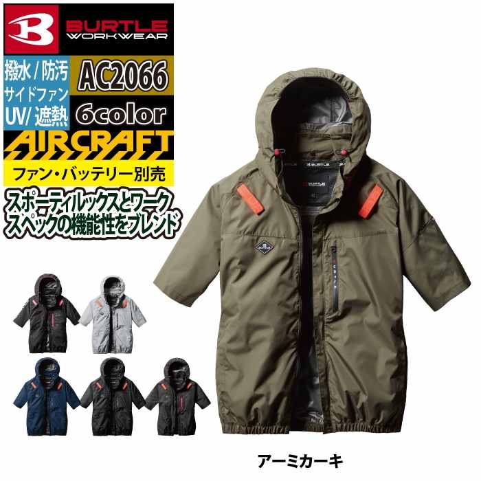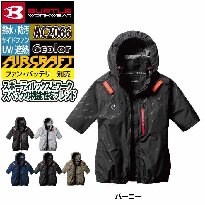 バートル BURTLE 作業着 2025春夏新作 エアークラフト AC2066 AC半袖ブルゾン S-XXL 作業服 単品 遮熱 撥水 サイドファン AIRCRAFT 爆買