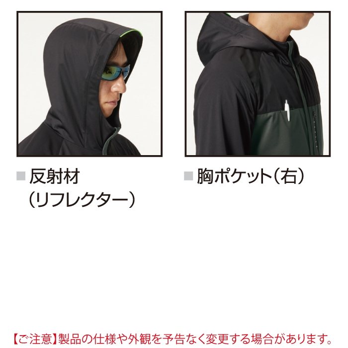 ・素材:表地/高密度ストレッチニット(伸長率40%以上)・防風ラミネート加工(耐水圧10000mm)・強撥水加工・裏地/アルミメッシュラミネート加工(保温性)