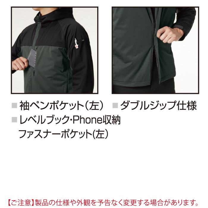 ・素材:表地/高密度ストレッチニット(伸長率40%以上)・防風ラミネート加工(耐水圧10000mm)・強撥水加工・裏地/アルミメッシュラミネート加工(保温性)