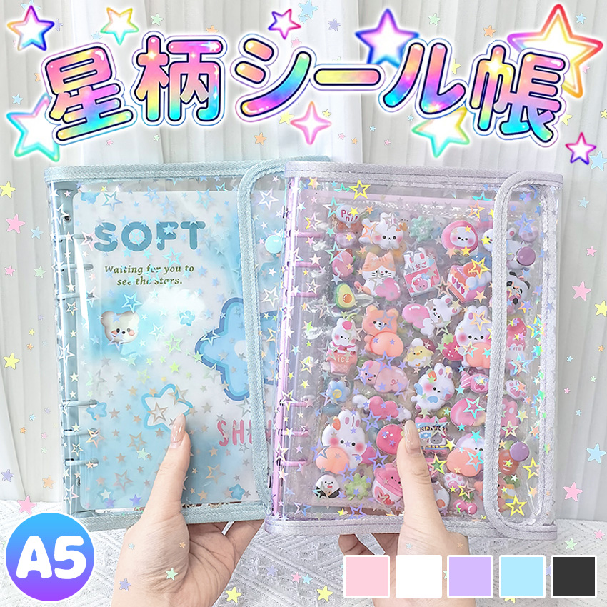 【ついに出たA5サイズ!】 シール帳 バインダー シール帳カバー PVCカバー 透明 ぷくぷく クリア A5 台紙 リフィル 6穴 可愛い キラキラ輝くシールバインダー