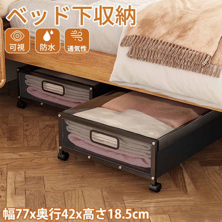 ■運びやすい:収納ボックスの下に4つの輪を搭載しています。普段収納ボックスをベッド下から引き出す時、力を省けます。家のほかのどころへ運ぶのも簡単になります。