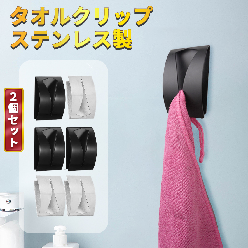 タオルクリップ タオル掛け 壁掛け タオルホルダー お風呂 耐久性 キッチン 穴あけ不要 強力粘着 錆びにくい タオル