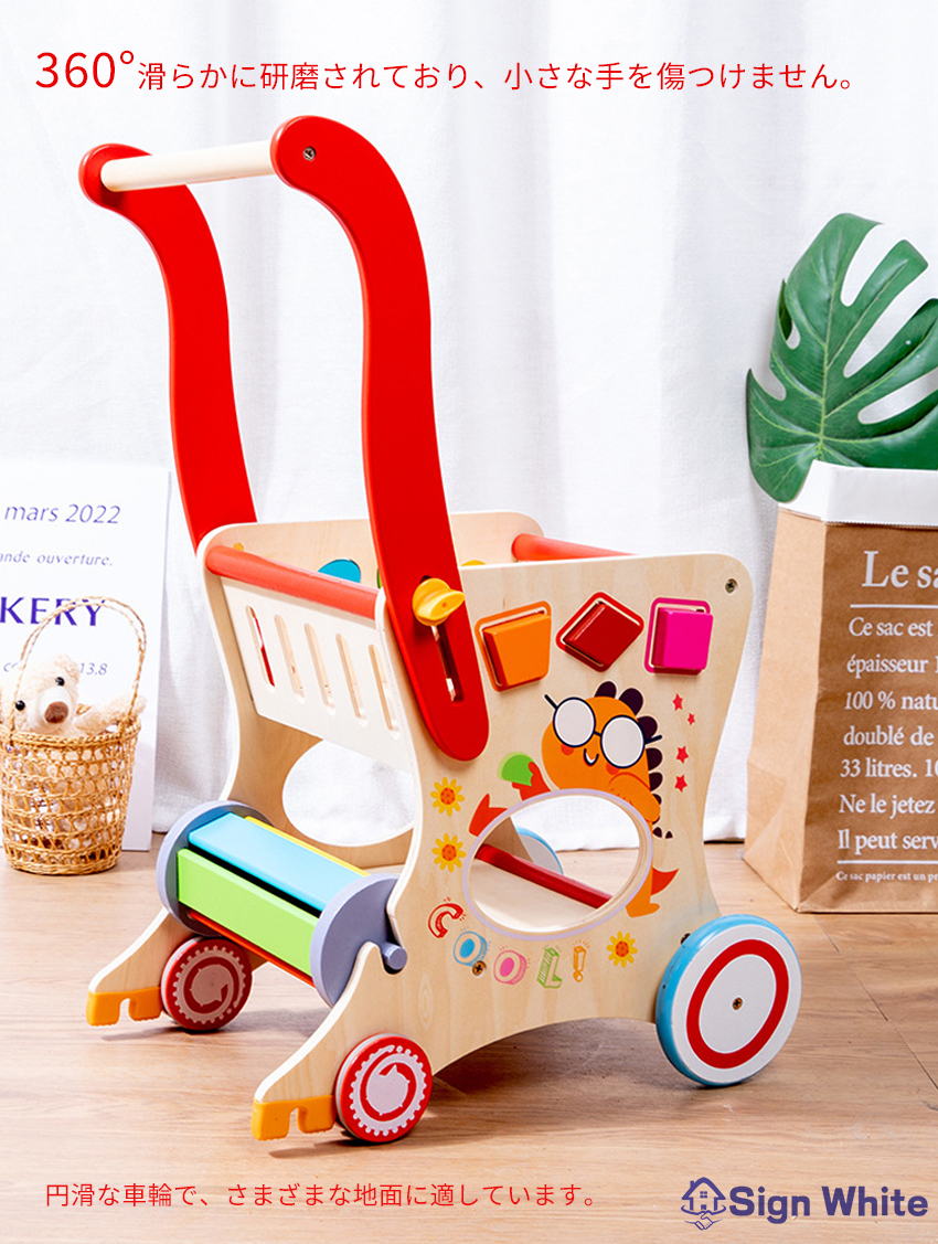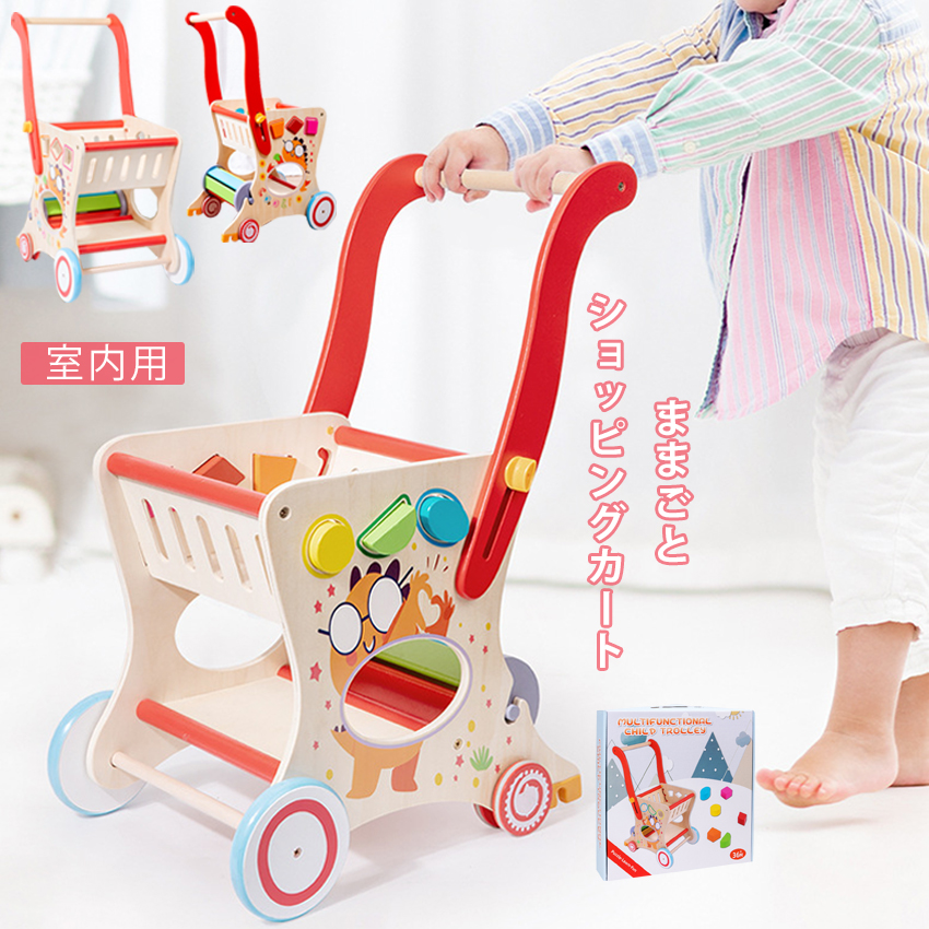 ままごと ショッピングカート おもちゃカート 木製 おままごと お買い物カート 子供 手押し車 知育玩具 収納 買い物のゲーム スーパーマーケット