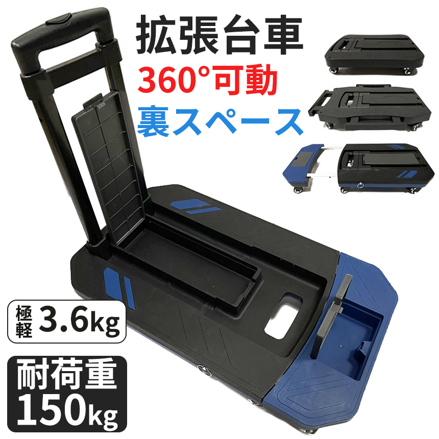 台車 折りたたみ 軽量 静音 拡張可能 折りたたみ台車 業務用 ブレーキ 耐荷重150kg キャリーカート 360度回転 ストッパー付き 手押し台車 アウトドア 家庭用