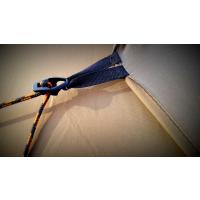 ULTRALIGHT ? Tarp 3x3の設置は、付属品の自在金具とガイラインを使用して行います。ガイラインの片側先端に自在金具を取り付け、ループに引っ掛けるだけで固定できるので、とても簡単でシンプルです。後はガイラインの反対側をペグや木などに取り付け、自在金具で好みのテンションに調整するだけです。