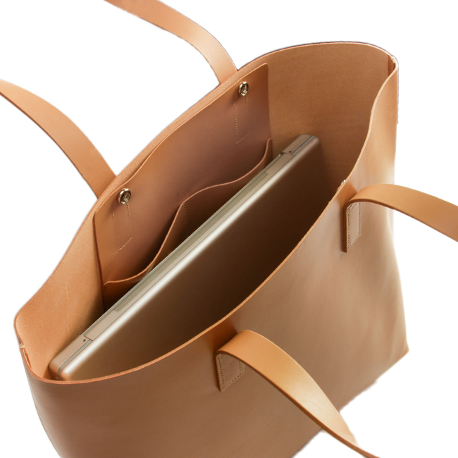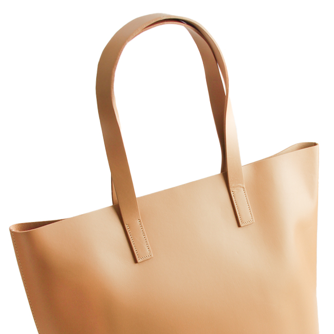 持ち手も本体と同様に牛革を使用。手持ちでも肩掛けでも程良い長さには、SLOWの経験値が活かされています。