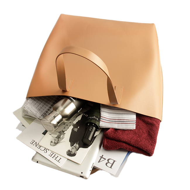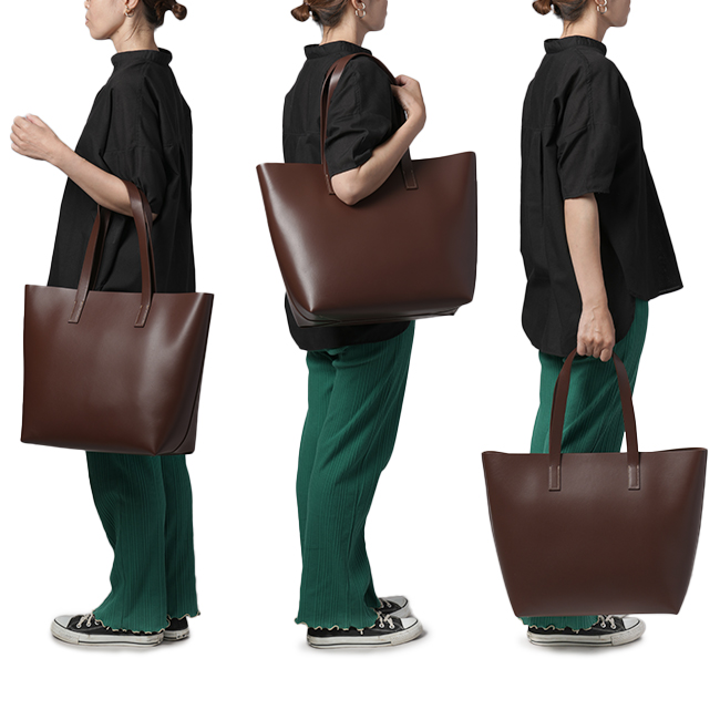 開口部が広くノートPCやファイルなども楽に収納可能。同シリーズトートバッグ Sサイズに比べ収納量が格段にUP。