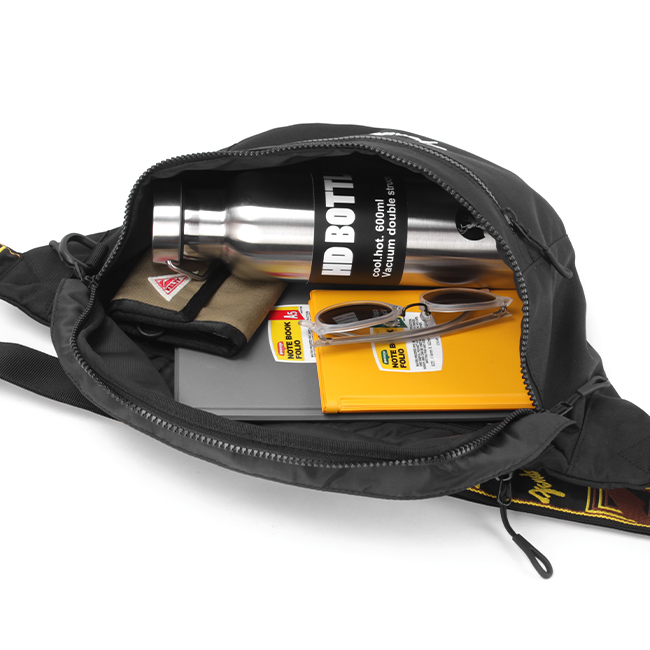 本体素材はCORDURA 610D生地を採用。引き裂きや摩耗に強く、軽量で、撥水性にも優れた万能素材です。