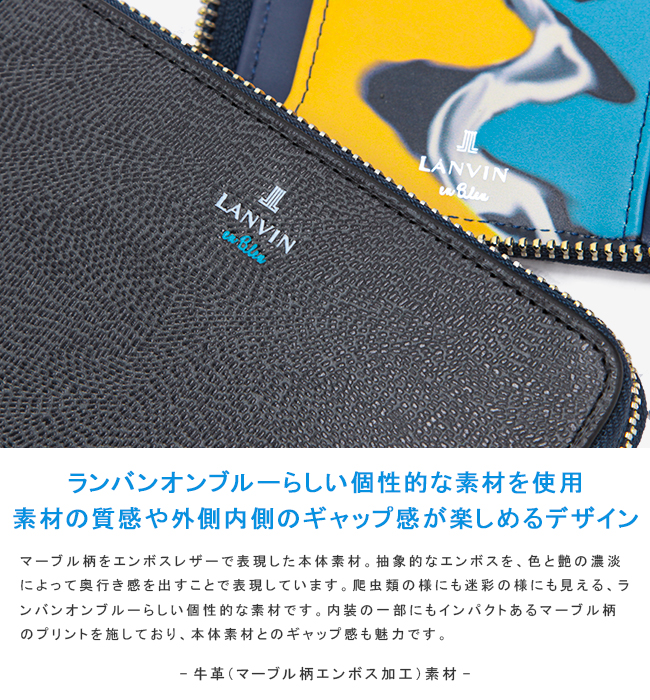 | ブランド |ランバンオンブルー / LANVIN en Bleu シリーズ |ネビュラ / Nebula 品番 |533604 形状 |ラウンドファスナー |ミドル財布 / 二つ折り財布 |ボタン式 ボックス型小銭入れ付 外寸 |W140×H95×D25[mm] 重量 |約 160g 素材 |牛革(マーブル柄エンボス加工) 付属 |ブランドロゴ入り化粧箱 |