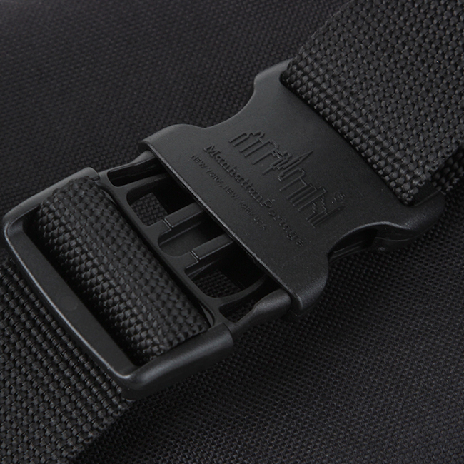 | コーデュラナイロン生地を採用。 | 着脱可能なショルダーベルトのバックル。 |