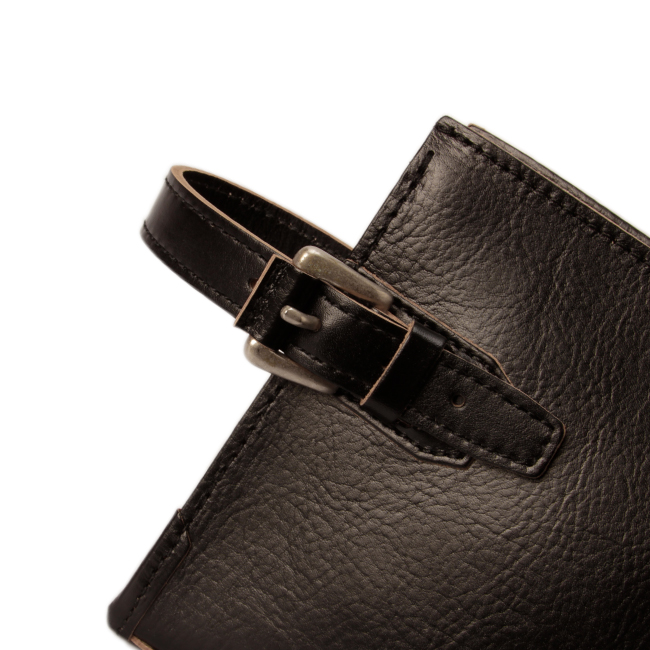引き手にも本体と同様に天然皮革を採用。長さもしっかり確保しているためスマートに開閉できます。