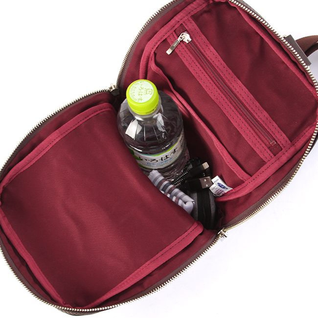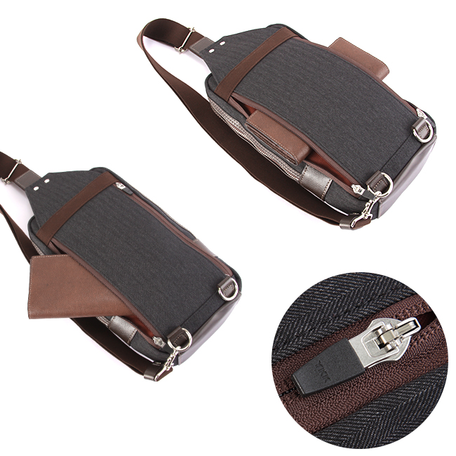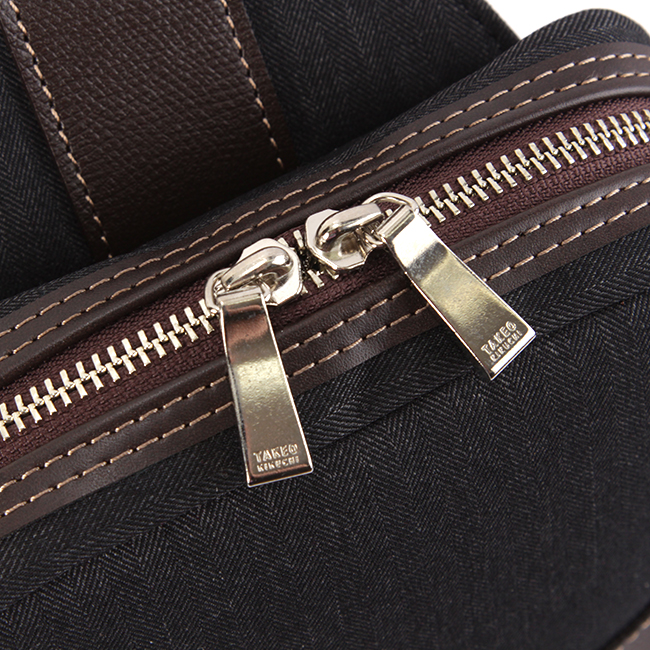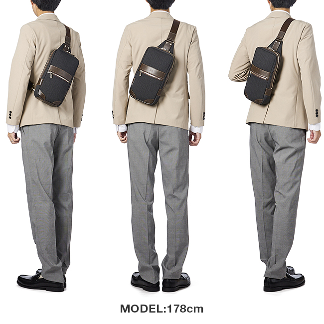 | 大人な雰囲気の「ヘリンボーン」生地を使用したTAKEO KIKUCHIのカジュアルバッグシリーズ。 休日の散策にジャストサイズのコンパクト設計ながら、外出に必要な物をたっぷり収納する事が出来る機能面も高めた、安心の日本製ワンショルダーバッグです。本体素材には汚れが付きにくく、水が中に染み込むことがなく、耐久性もある鞄用素材を使用しました。実際にTAKEO KIKUCHIのアパレルでも同様の生地が使用され、アパレルブランドらしい布帛生地を使用したデザイン性と、多機能素材を併せ持ちます。 多機能ポリエステル×牛革 本体生地には高感度・多機能素材として主に服地で用いられるLANATEC(ラナテック)という抗ピリング加工が施された杢調ポリエステルを使用。ヘリンボーン柄で織られた素材感のある大人っぽい印象の素材になります。表面には撥水加工を施し、裏面にカツラギを溶剤で圧着していますので、汚れが付きにくく、水が中に染み込むことがなく、抗ピリング加工により耐久性もある鞄用素材に仕上がっています。 付属革は実績のあるチェルケス調エンボスのヌメ革を引き続き使用しています。しっかりとエンボスされ、上品なイメージと強度に優れた素材になります。 ※抗ピリング加工…薬品につけることにより、ピリング(毛玉)ができにくくなる加工。 ※ヘリンボーン柄…ニシンの骨のような模様 こだわりの収納機能 ・すぐに取り出したい小物の収納に適した前面ファスナーポケット。 ・メインルームにはファスナーポケットとオープンポケット。 ・ペットボトルや長財布などが楽々収納できるサイズ感です。 ・左右どちらでも付けられるアジャスター付きのショルダーベルト。 長時間背負っていても付け変える事で左右の肩への負担の軽減に。 ・背面には、アジャスター付きショルダーベルトに合わせ、 左右どちらからも取り出せるファスナーポケット。 ・TAKEO KIKUCHIのロゴの刻印が入ったオリジナル金具を使用。 |