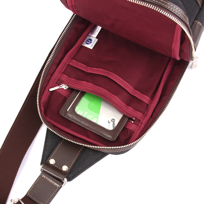 | ブランド |タケオキクチ / TAKEO KIKUCHI シリーズ |サード 品番 |723901 形状 |ワンショルダーバッグ / ボディバッグ 外寸 |W170×H310×D60[mm] 肩ひも |長さ:690〜1210[mm] |幅:40[mm] 重量 |約 440g 収納サイズ |A5用紙 / 500mlペットボトル 素材 |主素材:ポリエステル |副素材:牛革 生産国 |日本 / Made in Japan 収納機能 |外装 |●前面 ファスナーポケット |●背面 ファスナーポケット |(両側からアクセス可能) |内装 |●ファスナーポケット |●オープンポケット |