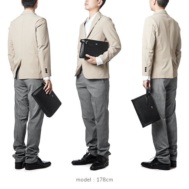 冠婚葬祭のシーンにも持てるシンプルなデザインのメンズバッグです。