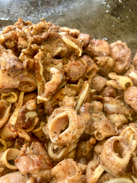 豚内臓肉(国産)、ごま油、食塩、黒コショウ、白コショウ、砂糖、オニオン、調味料(アミノ酸等)