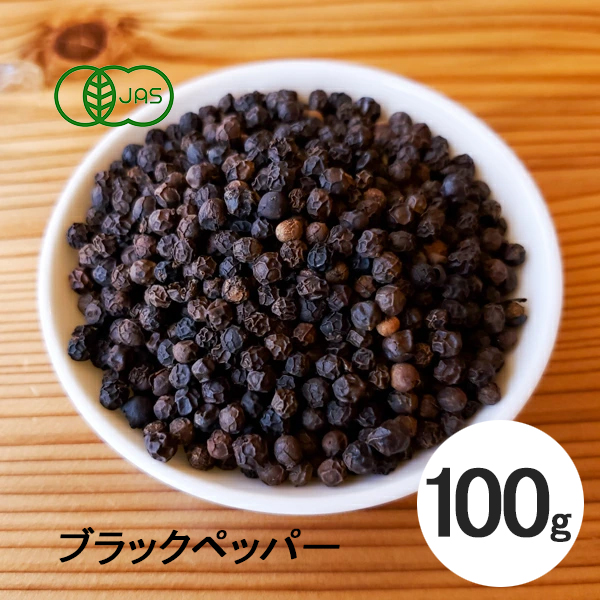 ブラックペッパー ホール 100g 有機 オーガニック スリランカ産 スパイス 香辛料 黒胡椒 黒コショウ ブラックペパー 有機JAS