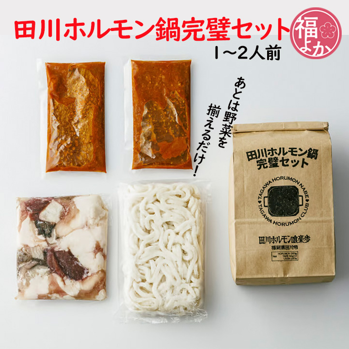 福岡県田川地域のご当地グルメ「田川ホルモン鍋」を、自宅で簡単に楽しめるセットです。