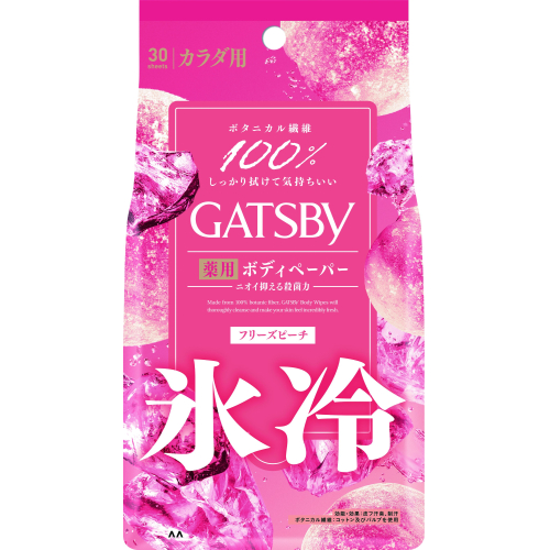 | 汗・ベタつきをしっかり除去しニオイも防ぐ。 ガシガシ拭けて爽快&気持ちいい薬用ボディペーパー。 丈夫でヨレにくい天然パルプ100%の厚手シート。 汗やベタつき・皮脂をしっかり除去。 ガシガシ拭けて肌サッパリ。 液たっぷりの大型ペーパー(25cm×20cm)だから、1枚で全身をしっかり拭ける。 こだわりの中身処方。 メントール(清涼成分)、超クールな使用感が長時間持続。 殺菌成分(※1)&制汗成分(※2)配合、汗を抑え拭き取り後のニオイもしっかり抑制。 ひんやり甘いピーチの香り。 こんなときにオススメ。 運動や外出時の汗に。 シャワーを浴びられないけどスッキリしたい時に。 デート前の身だしなみに。 (※1):イソプロピルメチルフェノール (※2):パラフェノールスルホン酸亜鉛 |