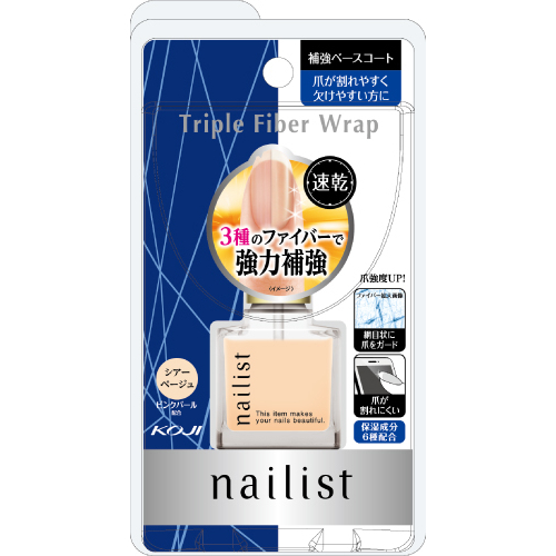 | 3種のファイバーで割れ・欠けから爪をガードする補強ベースコート。 爪が割れやすく欠けやすい方向け。 速乾タイプ。 3種類のファイバーが網目状に爪に密着し、表面の強度をアップ。 ネイルカラーによる爪の黄ばみを防ぐ。 重ね塗りして、1本で仕上げることも可能。 爪の色を整えるナチュラルなシアーベージュ(ピンクパール配合)。 乾燥対策、保湿成分6種配合。 |