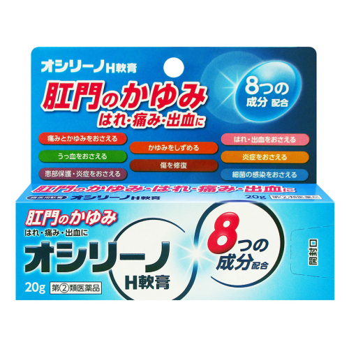| オシリーノH軟膏は,痔の治療に有効なヒドロコルチゾン酢酸エステル,酸化亜鉛など8種の有効成分を配合した痔疾用軟膏で痔の痛み,はれ,かゆみ,出血の不快な4つの症状の改善にすぐれた効果を発揮します。 |