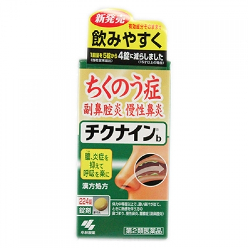 | ちくのう症(副鼻腔炎)、慢性鼻炎を改善する内服薬です 9種類の生薬からなる漢方「辛夷清肺湯(シンイセイハイトウ)」の働きで、鼻の奥の炎症を鎮めながら、膿(うみ)を抑えて呼吸を楽にします 1日2回で効く錠剤です |