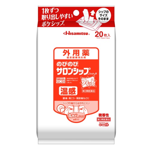 | ここちよい温感の〈微香性〉鎮痛消炎温感シップ剤。 薄く軽いので、使用部位にしっかり密着。 シップの角を丸くする事で衣類に引っかからず、はがれにくくなりました。 伸縮自在で、関節部位にもぴったりフィット。 フィルムがはがしやすく、貼りやすいシップです。 1枚ずつ取り出しやすく、コンパクトな包材の「ポケシップ」です。 |