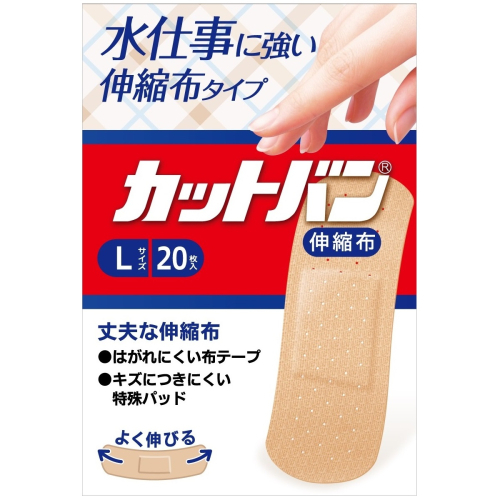 | ・合成ゴム系粘着剤を塗布した伸縮布粘着テープとベンザルコニウム塩化物薬液で消毒したポリオレフィンネット付き不織布パッドからなる救急絆創膏です。 |