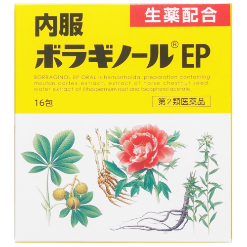 | 医薬品の使用期限 医薬品に関しては特別な表記の無い限り、1年以上の使用期限のものを販売しております。1年以内のものに関しては使用期限を記載します。 名称 痔疾用薬 内容量 16包 使用方法・用法及び使用上の注意 次の量を食後に水またはお湯で服用すること。 年齢:1回量:1日服用回数 成人(15歳以上):1包:2回 15歳未満:服用しないこと 用法・用量に関連する注意 用法・用量を厳守すること。 ■してはいけないこと (守らないと現在の症状が悪化したり,副作用が起こりやすくなる) 次の人は服用しないこと 本剤または本剤の成分によりアレルギー症状を起こしたことがある人。 ■相談すること 1.次の人は服用前に医師,薬剤師または登録販売者に相談すること (1)医師の治療を受けている人。 (2)妊婦または妊娠していると思われる人。 (3)薬などによりアレルギー症状を起こしたことがある人。 (4)次の診断を受けた人。 フェニルケトン尿症 2.服用後,次の症状があらわれた場合は副作用の可能性があるので,直ちに服用を中止し,この文書を持って医師,薬剤師または登録販売者に相談すること [関係部位:症状] 皮膚:発疹・発赤,かゆみ 消化器:食欲不振,吐き気・嘔吐 3.服用後,次の症状があらわれることがあるので,このような症状の持続または増強が見られた場合には服用を中止し,この文書を持って医師,薬剤師または登録販売者に相談すること 下痢 4.1カ月位服用しても症状がよくならない場合は服用を中止し,この文書を持って医師,薬剤師または登録販売者に相談すること 効能・効果 次の場合の症状の緩和:痔核(いぼ痔)、きれ痔、痔出血 成分・分量 2包(2g:成人の1日服用量)中 成分:含量 生薬エキス:ボタンピエキス:300mg(牡丹皮1200mgより抽出) 生薬エキス:セイヨウトチノキ種子エキス:100mg(西洋栃の木の種子600mgより抽出) 生薬エキス:シコン水製エキス:300mg(紫根900mgより抽出) ビタミン:ビタミンE酢酸エステル(トコフェロール酢酸エステル):100mg 添加物:アスパルテーム(L-フェニルアラニン化合物)、乳糖水和物、軽質無水ケイ酸、ケイヒ末、カルメロースナトリウム、カンゾウエキス 成分に関連する注意 本剤は生薬(薬用の草根木皮など)を用いた製品ですから、製品により顆粒の色調や味が多少異なることがありますが、効果にはかわりありません。 配合生薬について ボタンピ:ボタン(牡丹)は、生薬として根皮を用いることからボタンピ(牡丹皮)と称し、中国最古の薬物書「神農本草経」に収載されている重要な生薬の1つです。ボタンピから抽出したエキスは血液循環を改善し、炎症をおさえます。 セイヨウトチノキの種子:西洋栃の木は「マロニエ」の名でも知られ、種子のエキスはドイツ・フランスなどで痔の治療に用いられています。セイヨウトチノキ種子エキスは血液循環を改善し、炎症をおさえます。 シコン:根皮の色が名前の由来となっているシコン(紫根)は、紫草として「神農本草経」に収載されているムラサキの根で、外用としても古来より痔の治療に用いられています。シコンから抽出したエキスは炎症をおさえます。 保管および取扱い上の注意 (1)直射日光の当たらない湿気の少ない涼しい所に保管すること。 (2)小児の手の届かない所に保管すること。 (3)他の容器に入れ替えないこと(誤用の原因になったり品質が変わる)。 (4)使用期限を過ぎた製品は服用しないこと。 ・副作用被害救済制度 0120-149-931 賞味期限又は使用期限 パッケージに記載 発売元、製造元、輸入元又は販売元、消費者相談窓口 天藤製薬株式会社大阪府豊中市新千里東町1-5-3電話:0120-932-904(お客様相談係) 原産国 日本 商品区分 医薬品 |