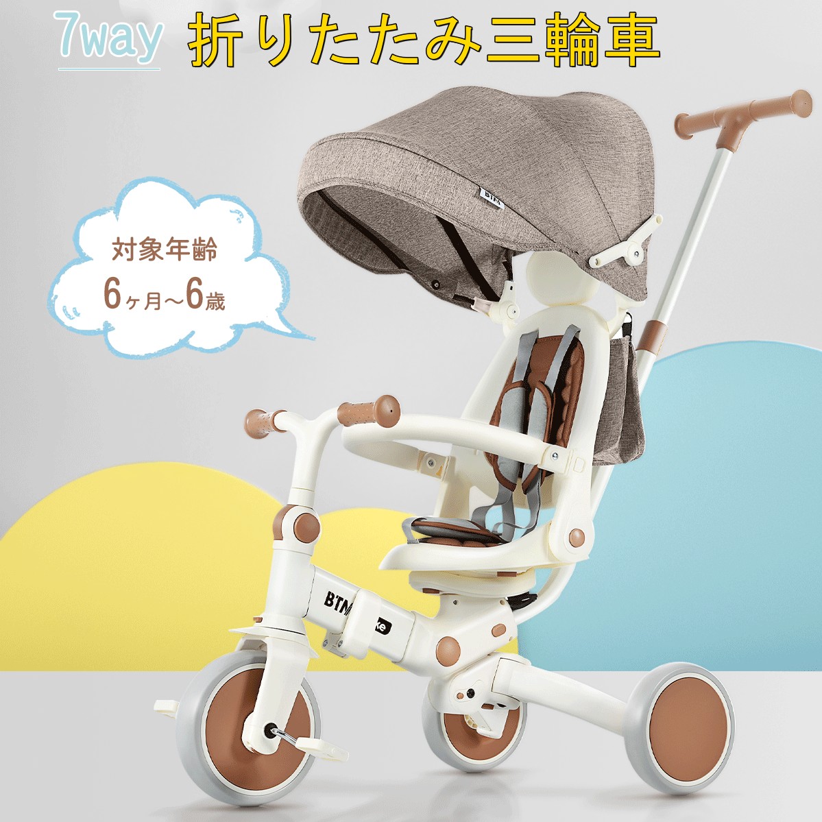 子供用三輪車 折りたたみ 7in1 手押し棒付き BTM 三輪車 キッズバイク バランスバイク ランニングバイク 自転車 おもちゃ 7WAY 乗用玩具 幼児用 子ども おもちゃ