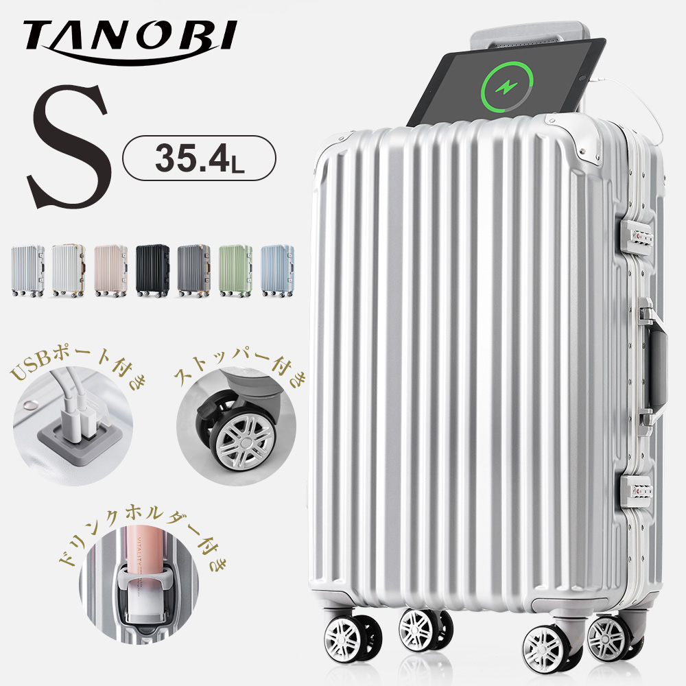 スーツケース 機内持ち込み Sサイズ 軽量 キャリーバッグ カップホルダーストッパー付き USBポート TSAロック 2泊3日 TANOBI T1169