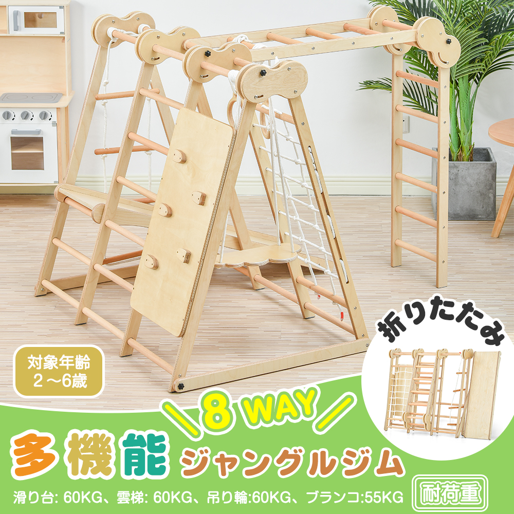 【全品P5倍★今夜20時〜4H限定!】ジャングルジム 折りたたみ 滑り台 室内 天然木 8in1 ブランコ コンパクト 室内遊具 大型遊具 赤ちゃん ベビー 子供