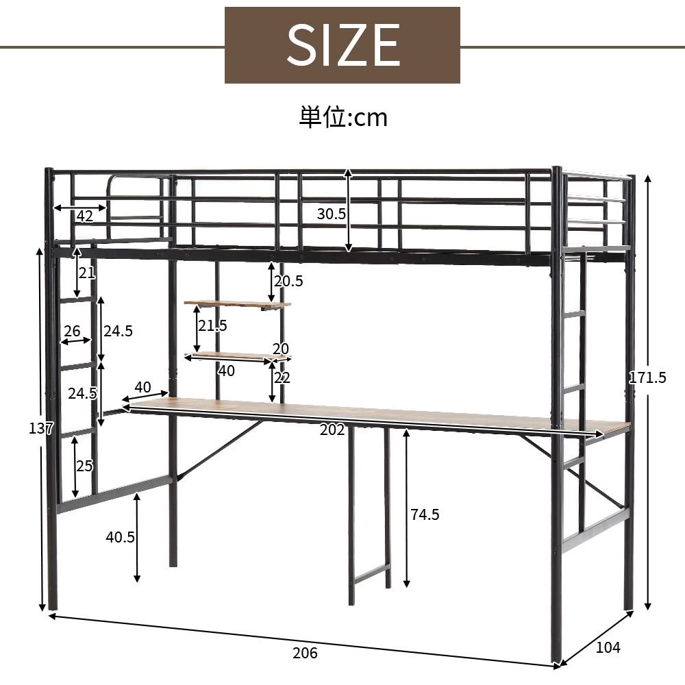 システムベット ロフトベッド シングル デスク付き ラック棚付き 耐荷重150kg 高さ170cm 北欧風 木目 子供ベッド 大人ベッド 一人暮らし