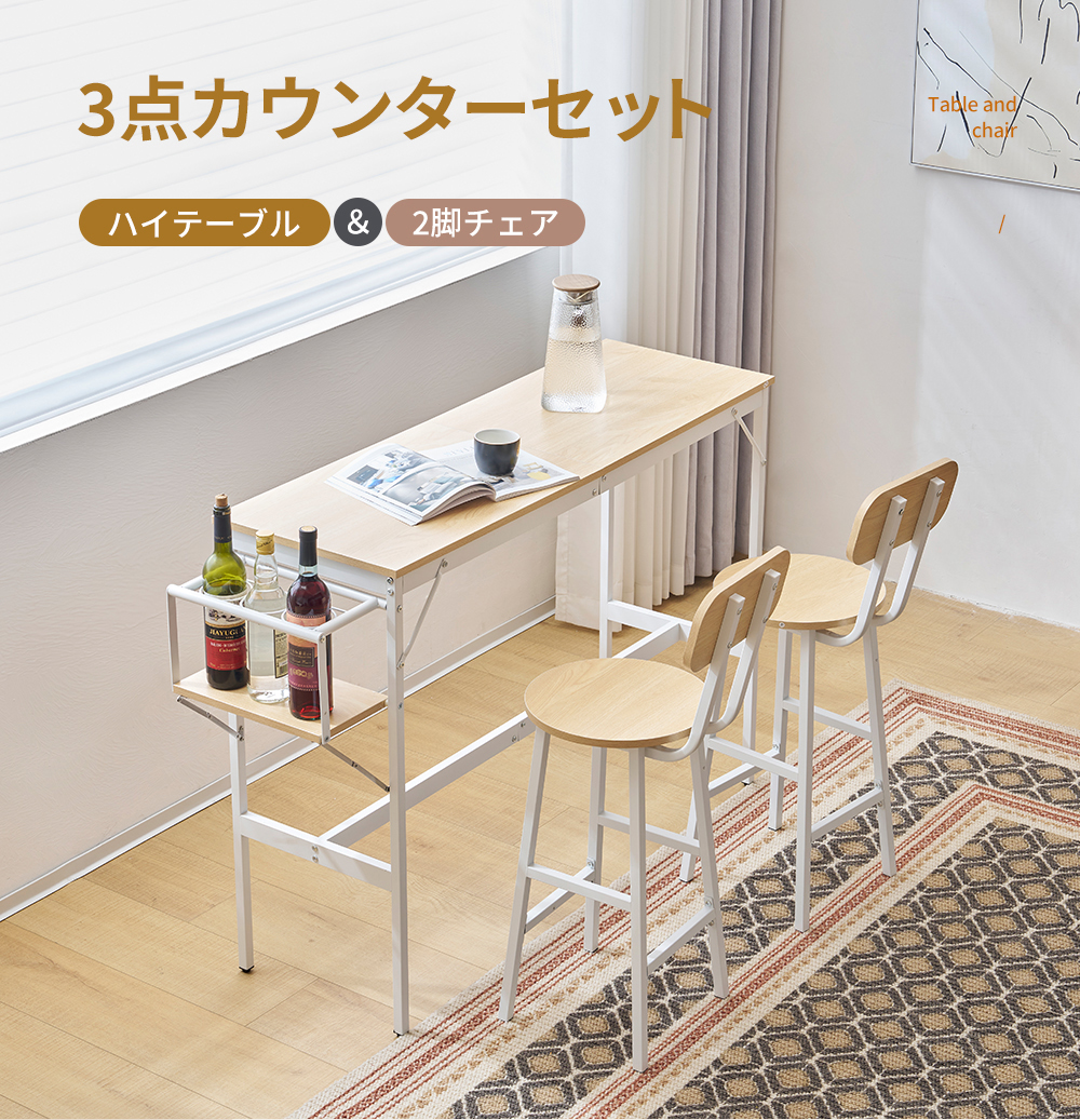 カウンターテーブルセット 3点セット ハイテーブル 木製 カウンター バーカウンター バーテーブル カフェ パソコンデスク シンプル ダイニングテーブルセット