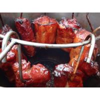 北海道の「夢の大地豚」ロース肉を天然塩と純正黒砂糖を手作業で塗りこみ、龍野醤油をベースにした当店秘伝のたれに1週間漬込み熟成させてから炭火でじっくりと時間をかけてドラムで吊るして焼き上げました。ロース肉はもも肉と比較すると柔らかく肉の旨みもあります。