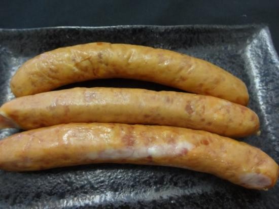 あらびきポークにチーズが入ったソーセージです。焼いても良いし、ボイルしても良いです。