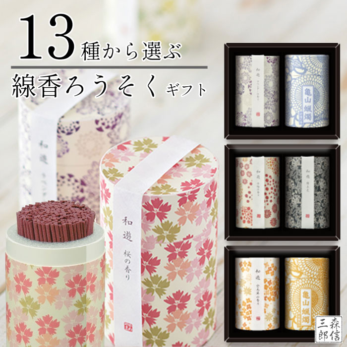 13種類の線香&ロウソクから2個選ぶギフトボックスです。