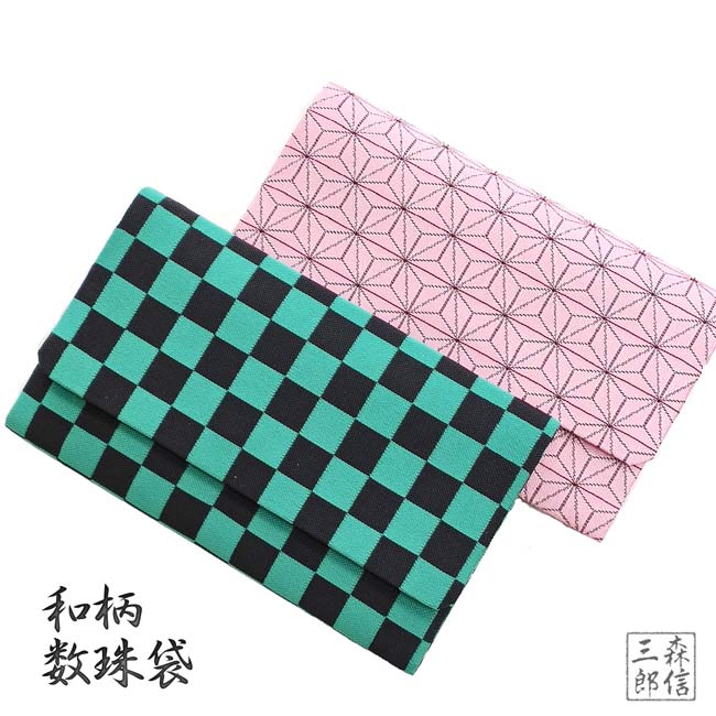 【送料無料】鬼退治 和柄 京都製 麻の葉 市松 数珠袋 ハードタイプ 男女兼用