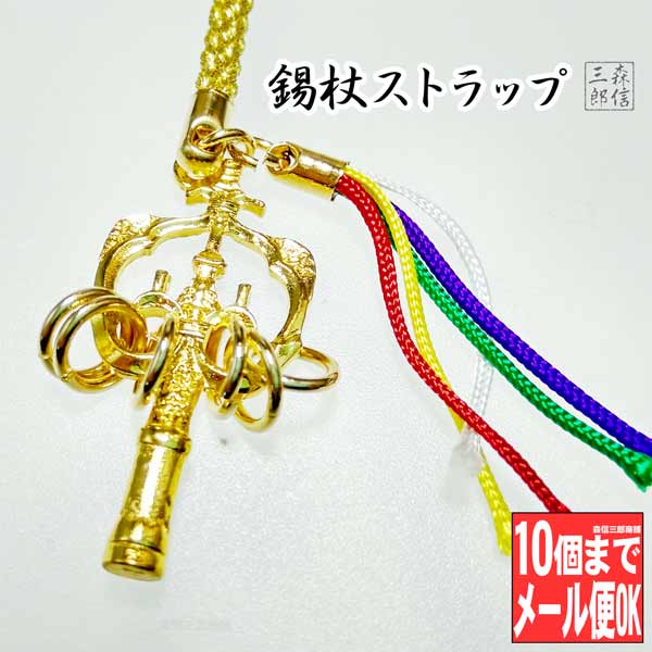 御守魔除け アクセサリー スマホ ストラップ 厄除け 災難除 錫杖ストラップ 五色紐 根付 (金属製 スマホ お守り 御守 魔除け)
