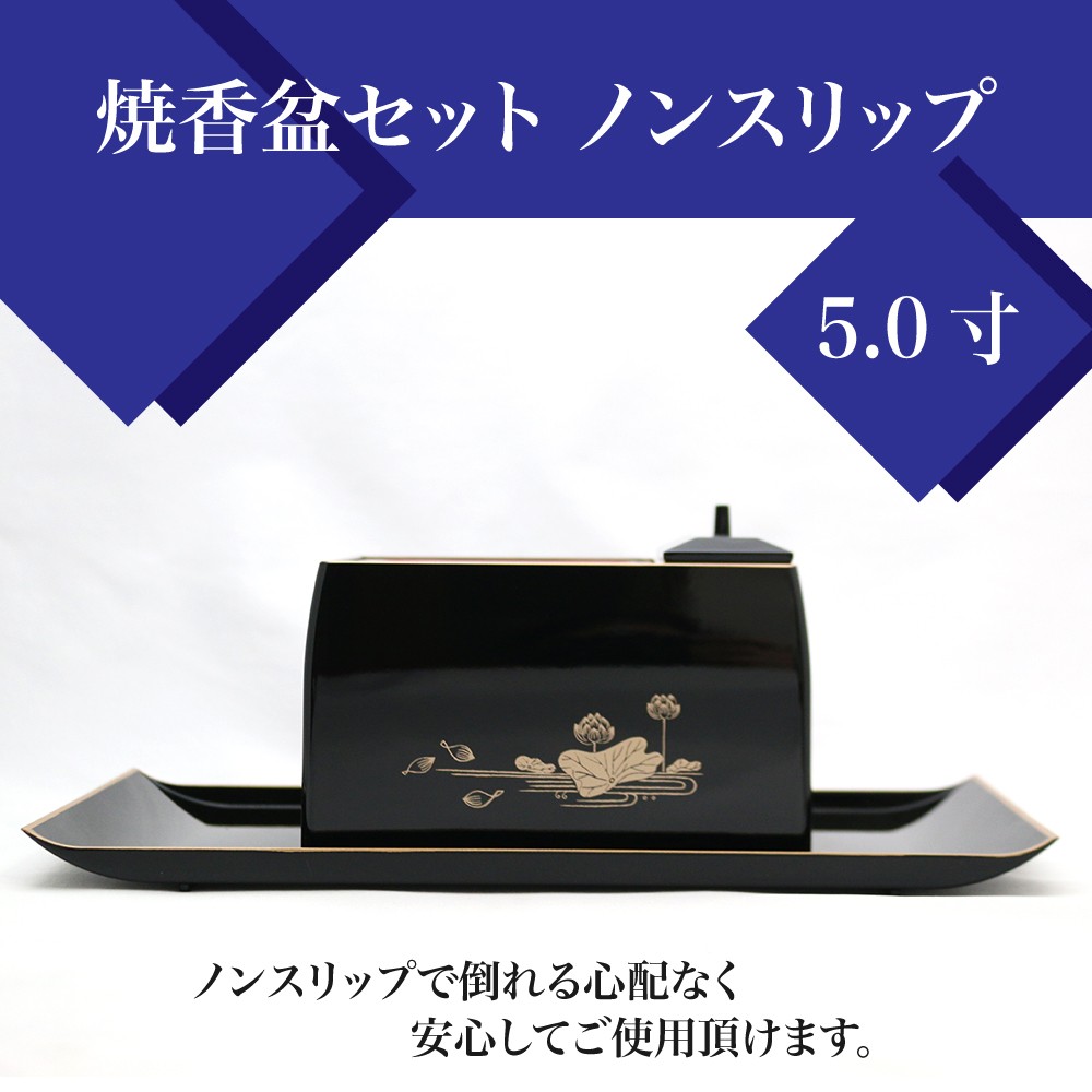 お手軽廻し香炉 焼香盆セット5.0寸 ノンスリップ 今なら香炉灰と香炭をプレゼント