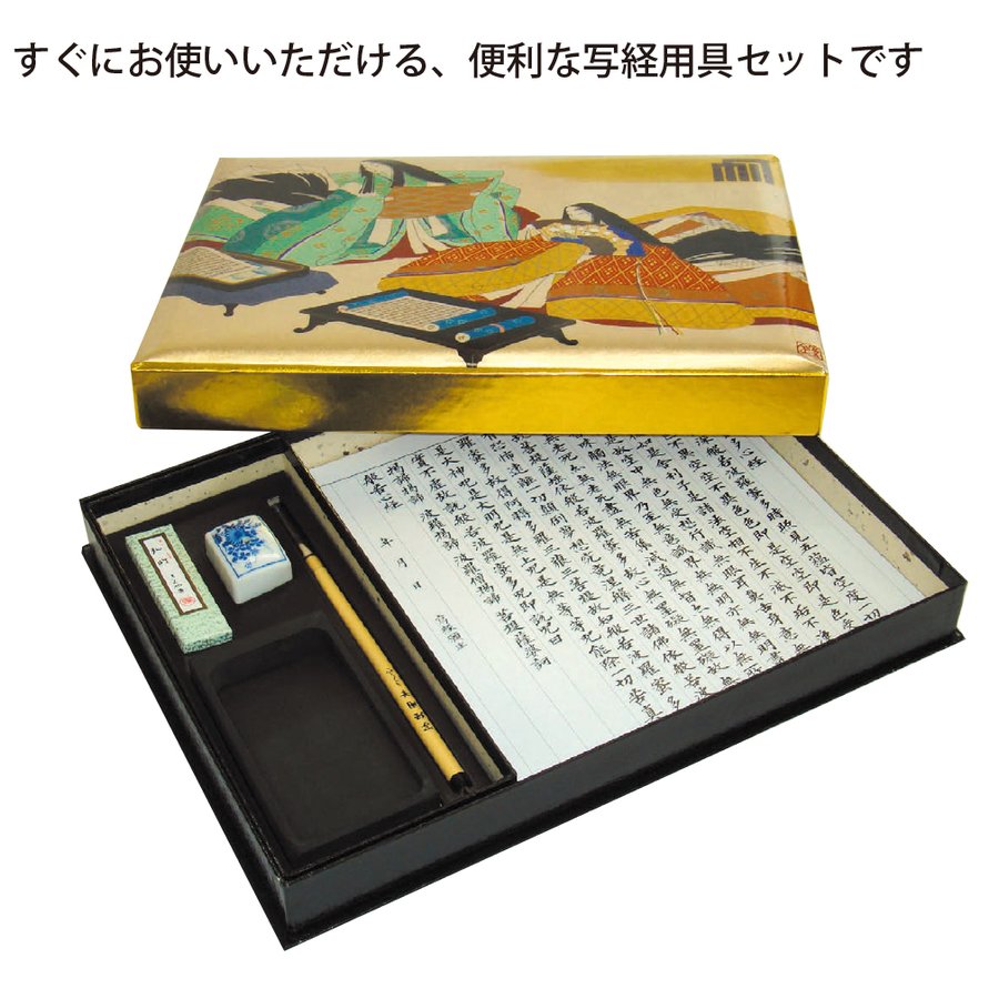 ・?セット内容 源氏化粧箱・硯・墨・筆・水差し・塗香たとう紙・般若心経手習い写経用紙(色紙サイズ)×各1・?箱サイズ:38×29×4cm・?日本製
