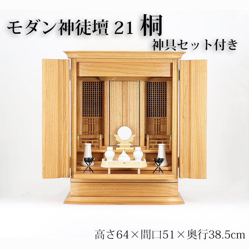 祖霊舎 モダン・家具調 神徒壇 桐 21号 上置き型(神具付き)日本製 高さ64cm×巾51cm