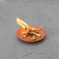 お盆に迎え火・送り火を焚く時は、焙烙皿(ほうろくさら)の上で松明(たいまつ)やあさがら(おがら)を積んで燃やします。