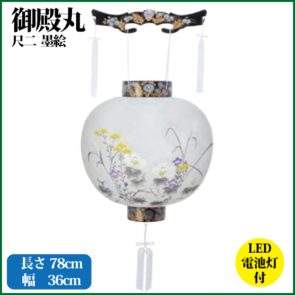 盆提灯 盆ちょうちん 尺二御殿丸 墨絵 吊り提灯 お盆 新盆 初盆 お盆用品 仏具